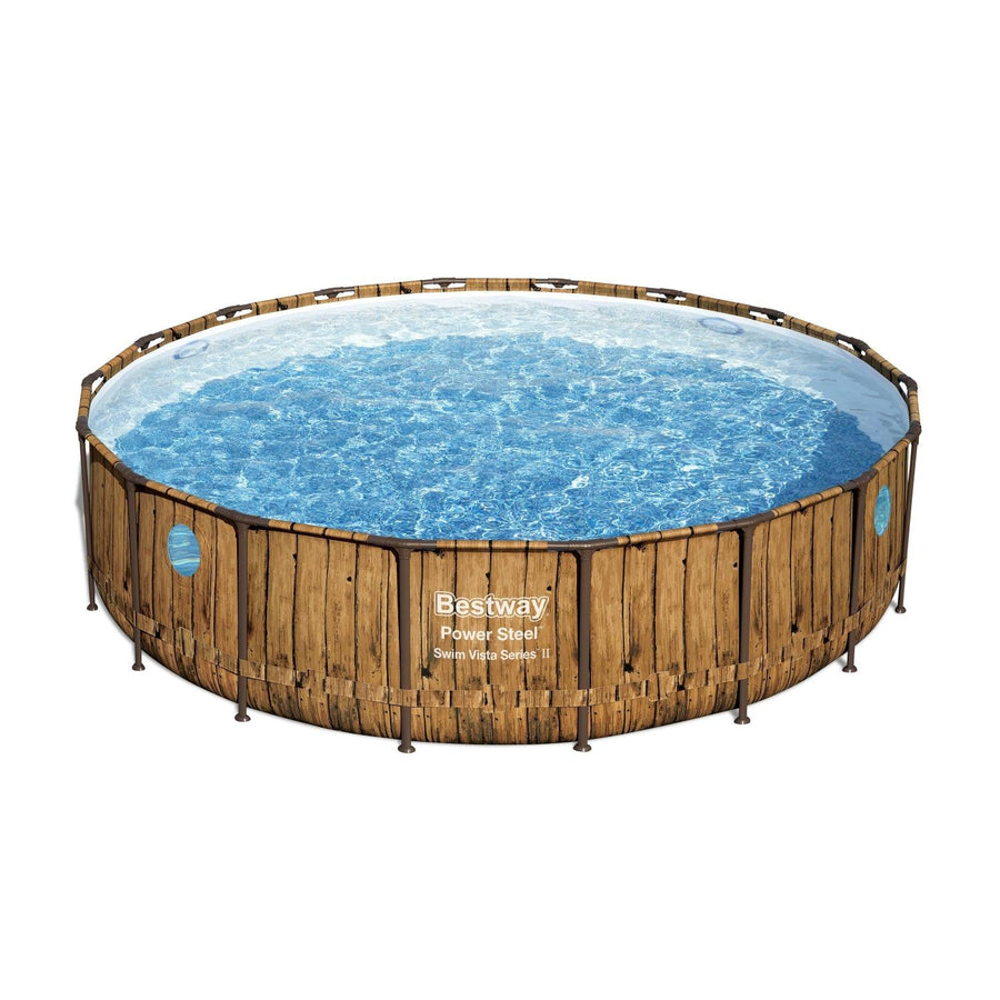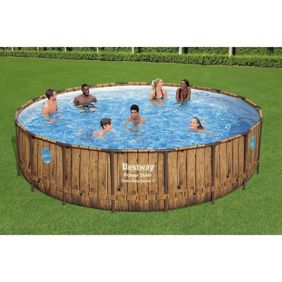 Las piscinas Bestway® Power Steel™ Swim Vista Series™ ofrecen una experiencia de natación verdaderamente única para familias. Con ojos de buey reforzados y fortificados integrados en los lados de la piscina, los nadadores pueden saludar y hacer muecas mientras nadan. Estas ventanas también permiten a los padres vigilar fácilmente a los niños mientras se sumergen en el agua. El revestimiento Tritech™ duradero y resistente a las perforaciones y el marco de acero resistente a la corrosión con Seal & Lock System™ hacen que esta serie de piscinas sea fuerte y resistente para usar en el patio trasero durante toda la temporada. El revestimiento también presenta un hermoso estampado de ratán que se adaptará perfectamente al diseño paisajístico del patio trasero. Los modelos de forma redonda brindan una opción rentable y un aspecto clásico.